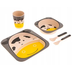 Jest to zestaw naczyń z włóknem bambusa dla dzieci. Wykonany z naturalnych, biodegradowalnych komponentów, przeznaczonych do kontaktu z żywnością, produkt jest całkowicie wolny od Bisfenolu A. Idealny do codziennego użytku. Zestaw naczyń można myć ręcznie lub w zmywarce do naczyń. Dzięki temu utrzymasz go w doskonałej czystości. Nie należy
