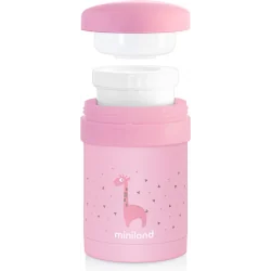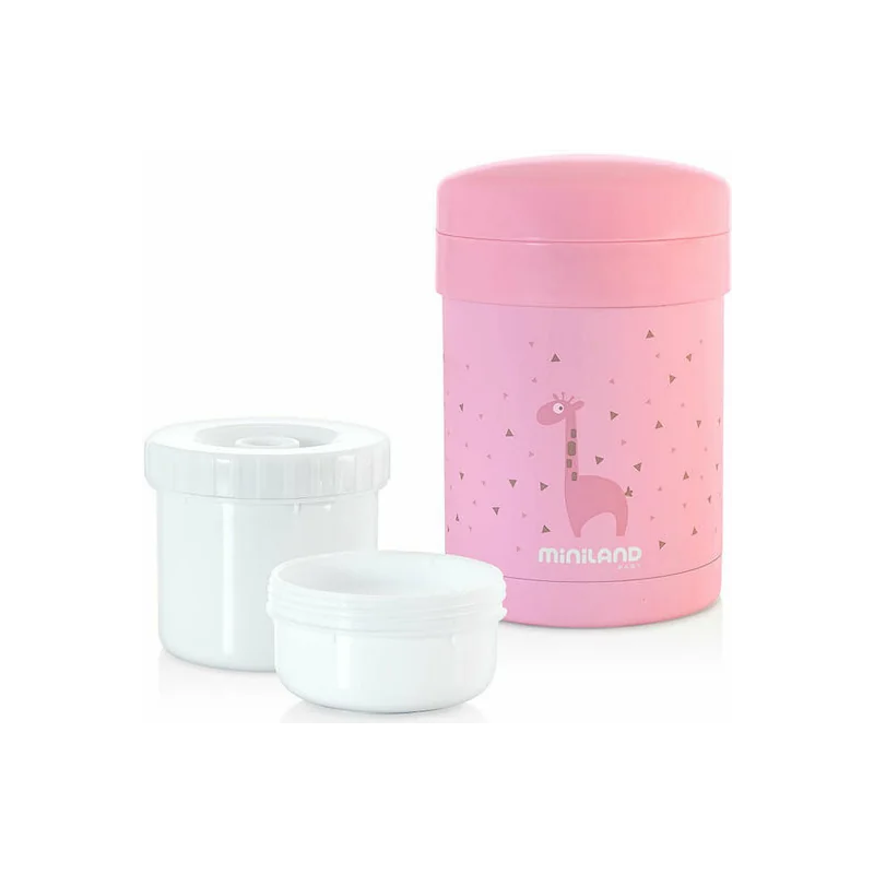 Termos na jedzenie z 2 pojemnikami hermetycznymi Miniland Rose to praktyczne rozwiązanie do przechowywania i transportowania posiłków w odpowiedniej temperaturze. Elegancki design w odcieniu różu, solidne wykonanie oraz wygoda użytkowania sprawiają, że termos doskonale sprawdza się w podróży, w pracy, w szkole oraz podczas spacerów z dzieckiem.