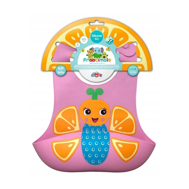 Śliniak silikonowy Frootimals Orangiefly to wygodny i bezpieczny produkt dla dzieci, który chroni ubrania przed zabrudzeniami podczas posiłków. Wykonany z wysokiej jakości silikonu, jest elastyczny, łatwy do czyszczenia i wyposażony w praktyczną kieszonkę na okruszki.