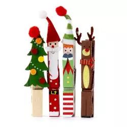 • w skład zestawu wchodzi 8 kolorowych spinaczy ozdobionych 4 różnymi motywami: choinka, renifer, Mikołaj, elf