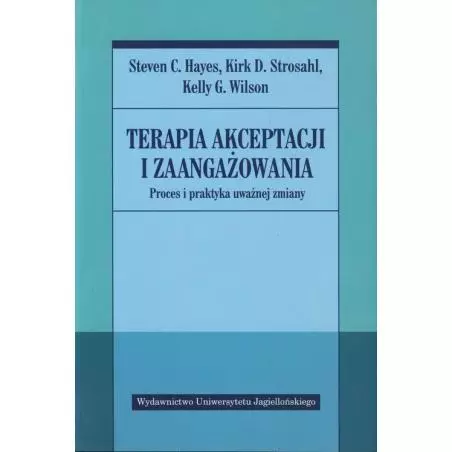 Terapia terapia akceptacji i zaangażowania (ACT) opiera się na założeniu, że główną przyczyną depresji, lęku i wielu innych form cierpienia jest brak elastyczności psychologicznej. Celem terapii jest pomóc pacjentom, tak by potrafili zrezygnować z nadmiernej zależności od trybu myślenia opierającego się na rozwiązywaniu problemów oraz rozwinąć w sobie bardziej otwarte, skupione i zaangażowane podejście do życia. Autorzy przedstawiają skuteczne, nowatorskie metody rozwijania elastyczności psychologicznej dzięki pracy nad wskazanymi sześcioma podstawowymi procesami: defuzją, akceptacją, kontaktem z chwilą obecną, Ja jako perspektywą, określaniem wartości oraz zaangażowanym działaniem. Tekst przeplatany jest przykładami ćwiczeń terapeutycznych i rozmów między pacjentem a terapeutą. Niniejsza publikacja zawiera najbardziej autorytatywny opis ACT, sporządzony przez twórców tej terapii. Niniejsze wydanie ukazuje ogromny postęp, jaki dokonał się w zastosowaniach klinicznych, rozbudowę teorii, na której opiera się terapia, oraz wyniki badań. Przeredagowano je tak, aby stało się bardziej przystępne i lepiej służyło klinicystom. Skupia się na rozwijaniu elastyczności psychologicznej. Ta wyczerpująca publikacja zawiera cenne refleksje oraz narzędzia kliniczne ułatwiające pracę wielu specjalistom z szeroko pojętej dziedziny zdrowia psychicznego, w tym psychologom klinicznym, psychiatrom, pracownikom socjalnym i doradcom. Zainteresuje także badaczy zajmujących się psychoterapią. Stanowi ważną pozycję również jako podręcznik psychoterapii na studiach magisterskich. Jest to lektura obowiązkowa dla wszystkich osób zajmujących się psychoterapią lub terapią behawioralną, jak również dla studentów rozpoczynających pracę w tych dziedzinach. Terapia akceptacji i zaangażowania jest jedną z niewielu książek mających solidne oparcie w danych naukowych, a jednocześnie wyrastających z twórczej, nowatorskiej teorii. David H. Barlow, PhD, ABPP, Professor of Psychology and Psychiatry, Boston University, założyciel i emerytowany dyrektor Center for Anxiety and Related Disorders Autorzy prezentują wiarygodne uzasadnienie kliniczne oraz jasne wytyczne, jak wdrażać ACT. Największą zaletą książki są rozdziały poświęcone kolejnym fazom terapii, omawiające rozliczne strategie i interwencje oraz podające przykładowe ćwiczenia, rozmowy między pacjentem a terapeutą oraz wskazówki pomocne w dalszej pracy. Leslie S. Greenberg, PhD, Distinguished Research Professor, Department of Psychology, York University, Kanada