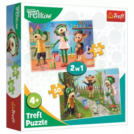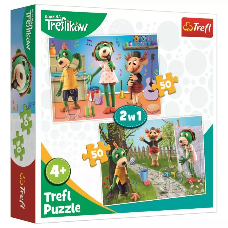 Wspólne zabawy Treflików to puzzle składające się z 2 niezależnych układanek, zaprojektowane z myślą o wszystkich fanach i fankach Rodziny Treflików. Po ułożeniu układanek powstaną obrazki o wymiarach 330x220Vmm z głównymi bohaterami bajki - Treflikiem, Treflinką i Małym Wujciem.