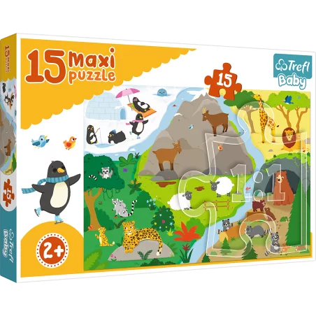 Puzzle stworzone specjalnie z myślą o dzieciach powyżej 2 roku życia. Układankę tworzy 15 bardzo dużych, puzzlowych elementów, dzięki czemu dzieci poradzą sobie z samodzielnym ułożeniem obrazka. Zabawa rozwija zdolności manualne, spostrzegawczość i daje radość samodzielnego tworzenia. Kolorowy obrazek przedstawia fascynujący świat zwierząt oraz ich domów.