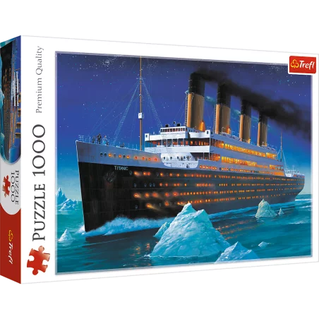 PUZZLE TITANIC 1000 ELEMENTÓW TREFL to wyjątkowa układanka przedstawiająca legendarny transatlantyk RMS Titanic w całej okazałości. Obraz inspirowany historycznym statkiem zachwyca detalami i klimatyczną kolorystyką. Zestaw składa się z 1000 precyzyjnie dopasowanych elementów, które po ułożeniu tworzą