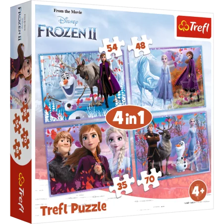 Puzzle składające się z 4 niezależnych układanek, zaprojektowane z myślą o wszystkich fanach i fankach kultowego filmu Kraina Lodu 2 Frozen 2. Po ułożeniu układanek powstaną obrazki o wymiarach 285x205mm. Zróżnicowana liczba elementów pozwala na zabawę zarówno młodszym, jak i nieco starszym dzieciom.