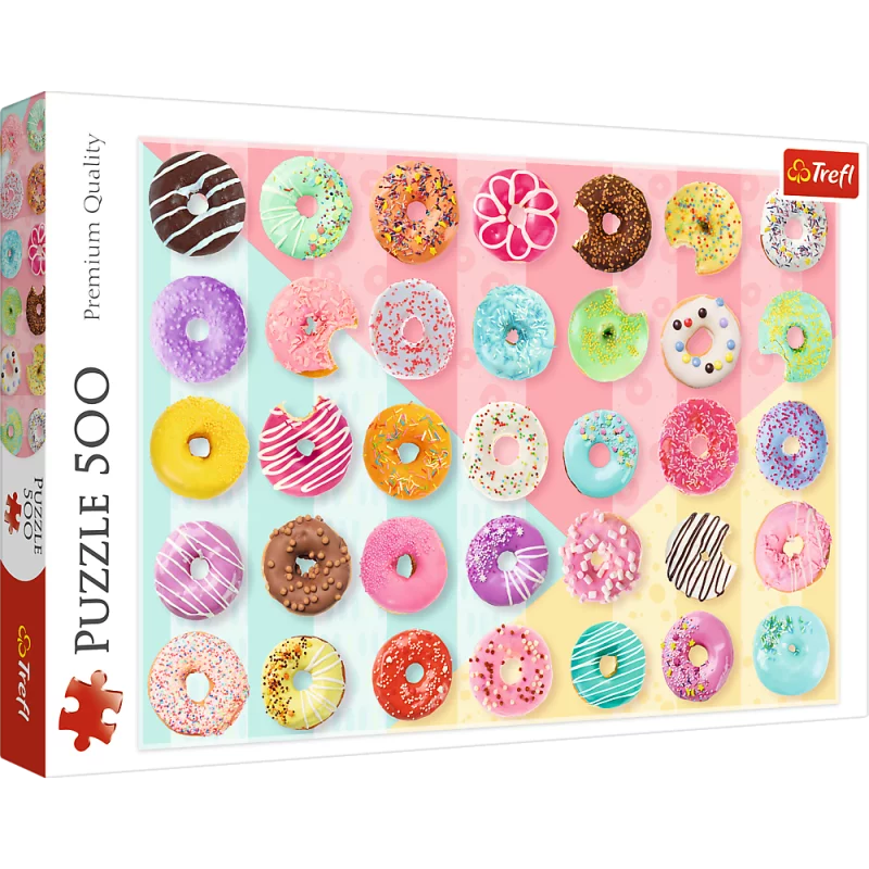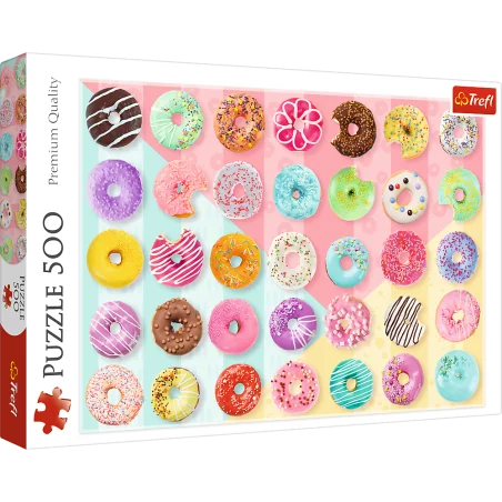 Puzzle składające się z 500 elementów przedstawiające smakowite, kolorowe donaty.