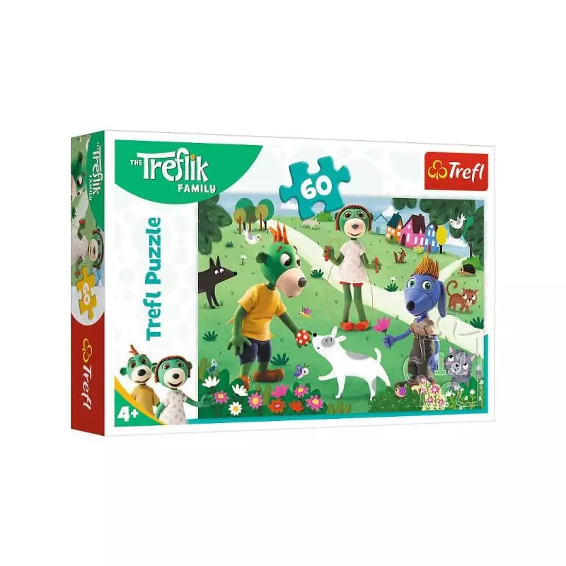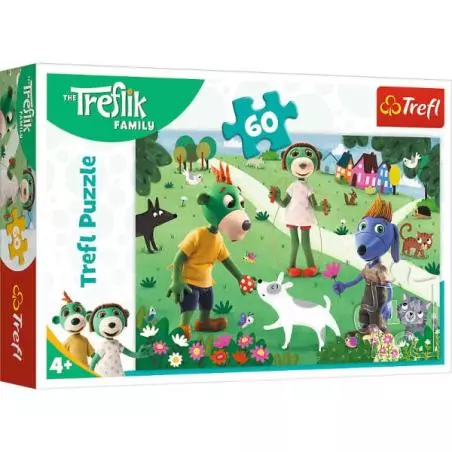 Radosny dzień Treflików to puzzle składające się z 60 elementów, zaprojektowaną z myślą o wszystkich fanach i fankach bajki Rodzina Treflików. Po ułożeniu układanki powstanie obrazek o wymiarach 330x220mm.