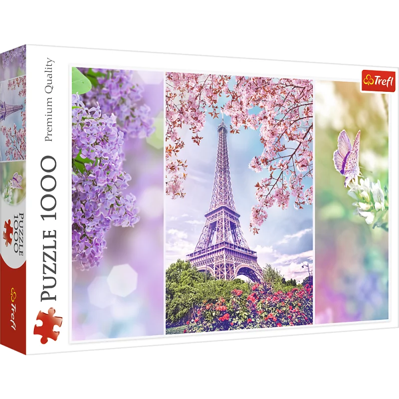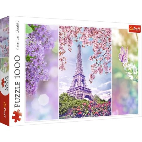 Puzzle 1000 elementów z romantycznym tryptykiem zdjęć z wiosennego Paryża.