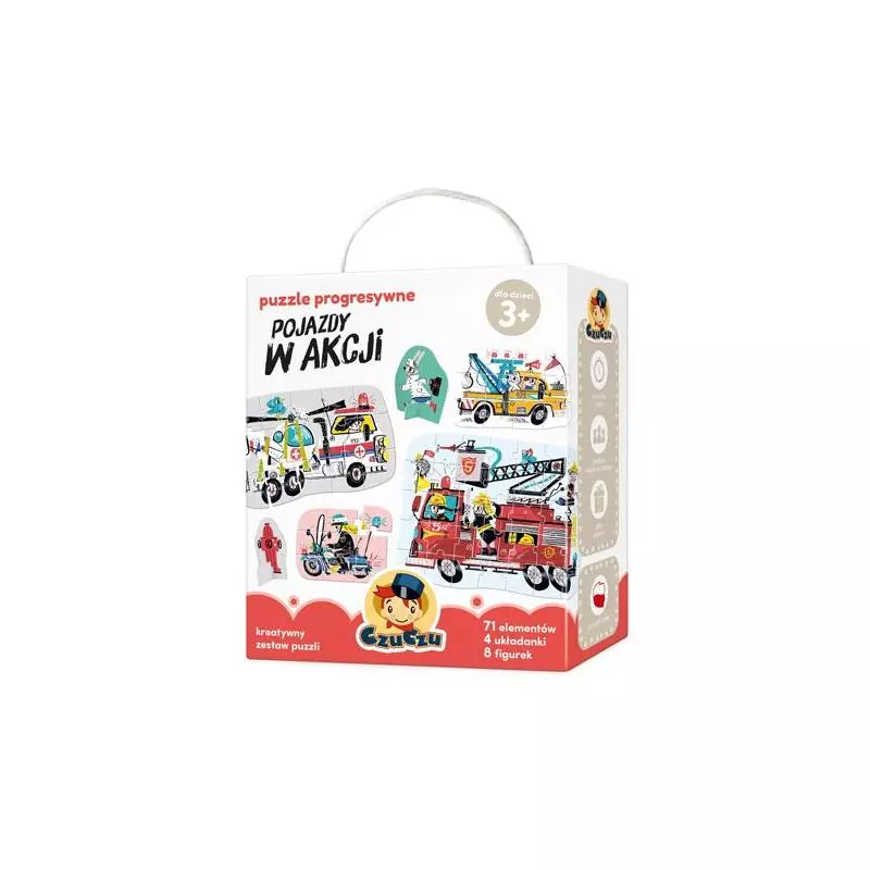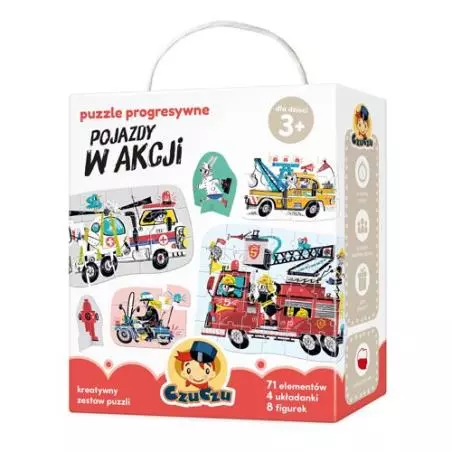 Komplet czterech układanek dla wielbicieli pojazdów do zadań specjalnych.