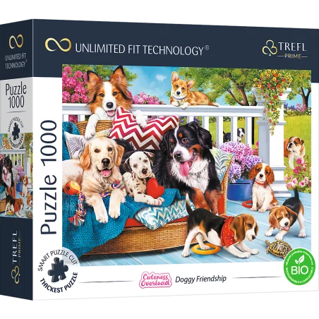 Puzzle przedstawiają Doggy Friendship. Po ułożeniu powstanie obraz o wymiarach 683x480 mm.