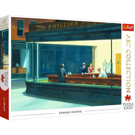 Puzzle składają się z 1000 elementów i przedstawiają obraz olejny Nocne marki, autorstwa Edwarda Hoppera.