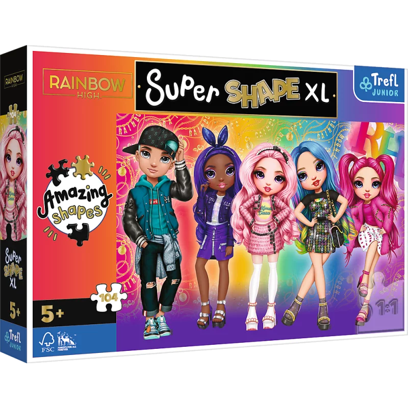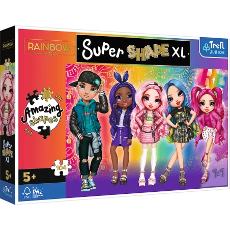 Puzzle Super Shape XL to duże układanki podzielone na 104 elementy, wśród których znajdują się również elementy o nietypowych kształtach.