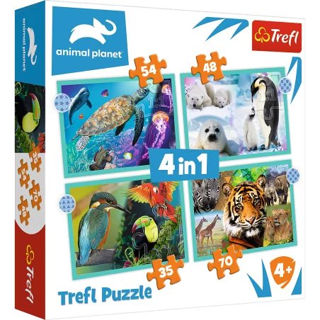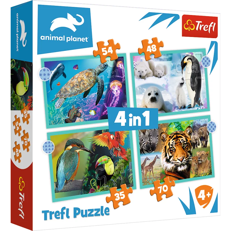 Tajemniczy świat zwierząt to puzzle dla dzieci składające się z 4 niezależnych układanek, zaprojektowane z myślą o wszystkich miłośnikach zwierząt. Po ułożeniu puzzli powstaną cztery obrazki o wymiarach: 285 x 205 mm każdy.