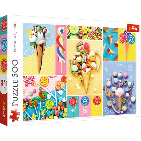Puzzle składające się z 500 elementów przedstawiające kolaż ze smakowitymi słodyczami. Po ułożeniu powstanie obrazek