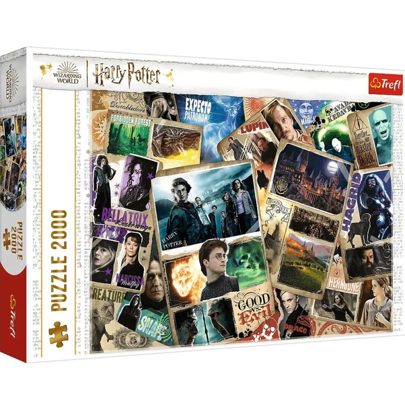 Szukasz pomysłu na prezent dla fana Harry`ego Pottera? A może sam darzysz sympatią bohaterów tej wciągającej serii książek i filmów? Jeżeli do tego dochodzi zamiłowanie do układania puzzli, to właśnie trafiłeś na produkt idealny. Puzzle te są swego rodzaju kolażem, przedstawiającym wycinki ze znanej z "Harry`ego Pottera" gazety Prorok Codzienny. Znajdziesz na nich wizerunki różnych bohaterów, od Harry`ego, przez innych uczniów oraz nauczycieli magicznej szkoły, aż po samego Voldemorta. Układanka wykonana została z trwałego, odbijającego światło papieru, dzięki czemu układanie jej to czysta przyjemność. 2000 elementów to ilość, która jest gwarancją fantastycznej zabawy na wiele godzin, a nawet dni. Obrazek po ułożeniu zajmuje powierzchnię niemalże metr na siedemdziesiąt centymetrów. Doskonale sprawdzi się oprawiony i powieszony na ścianie w formie obrazu.
