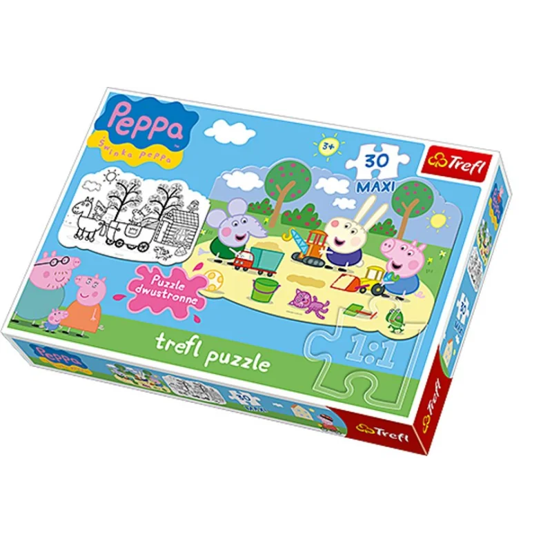 Puzzle Maxi konturowe to duże, dwustronne układanki przeznaczone dla młodszych dzieci. Dają możliwość ułożenia zarówno pięknego obrazka z lubianą przez dzieci Świnką Peppą, jak i kolorowanki pomagającej rozwijać kreatywność już od najmłodszych lat. Puzzle zapewniają ciekawą i urozmaiconą zabawę połączoną z radością