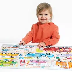 Możecie bawić się razem na wiele sposobów, dostosowując poziom trudności zabawy do wieku i umiejętności dziecka: pomóż dziecku ułożyć puzzle, jeśli będzie tego potrzebować lub jeśli tylko macie na to ochotę – to świetny sposób na wspólne spędzanie czasu. Nazywajcie pojazdy, ich kolory i poszczególne części oraz inne szczegóły ilustracji. Możecie bawić się w naśladowanie odgłosów pojazdów. Narysujcie własne.
