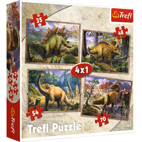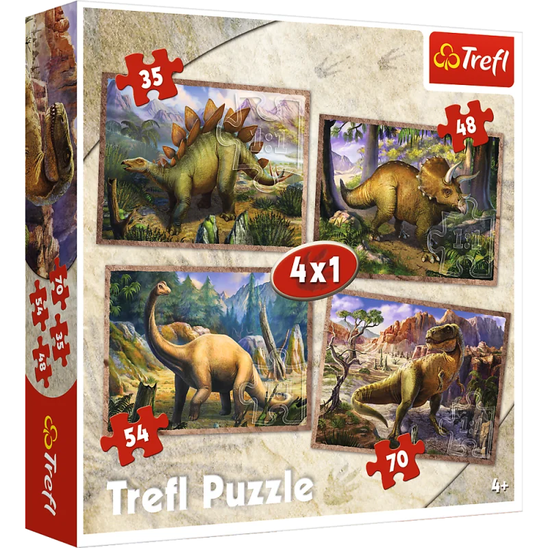 Po ułożeniu otrzymamy cztery obrazki różnej wielkości z dinozaurami. Zestaw doskonale spełnia oczekiwania rodzeństwa - każdy ułoży swój ulubiony obrazek nawet w tym samym czasie. Zróżnicowana liczba elementów pozwala na