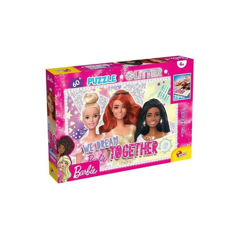 Wyjątkowe brokatowe puzzle na licencji Barbie. W zestawie znajduje się obrazek o wielkości 50 x 35 cm cm, który składa się z 60 elementów.