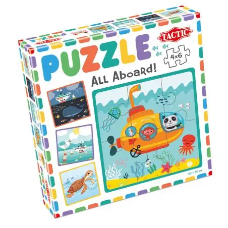 Zawartość: 24 kolorowe puzzle (4 układanki po 6 elementów każda).