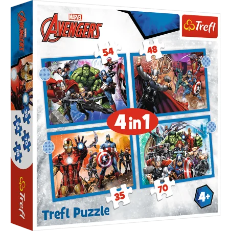 Puzzle składające się z 4 niezależnych układanek, zaprojektowane z myślą o wszystkich fanach i fankach Avengersów.