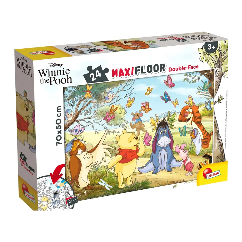 Puzzle dwustronne Lisciani Maxi Kubuś Puchatek 24 elementy to urocza zabawa dla najmłodszych miłośników Kubusia Puchatka i jego przyjaciół! W tym zestawie znajdziesz 24 duże puzzlowe elementy, które po ułożeniu tworzą dwustronny obrazek z ulubionymi postaciami z tego klasycznego świata literackiego.