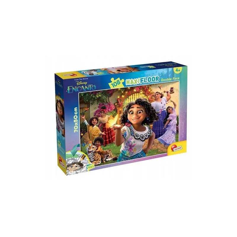 Baw się świetnie odtwarzając najlepsze sceny z bajki ENCANTO! Układaj dwustronne puzzle, tworząc piękny obrazek lub koloruj jego czarno-biały odpowiednik, starając się odtworzyć kolory z bajki lub nadając całej scence nowego charakteru. Produkt zawiera 108 elementów.