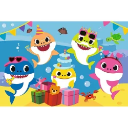 Wesołe Baby Shark to Puzzle 24 maxi składające się z 24 bardzo dużych elementów, zaprojektowaną z myślą o wszystkich fanach i fankach zwierząt morskich.