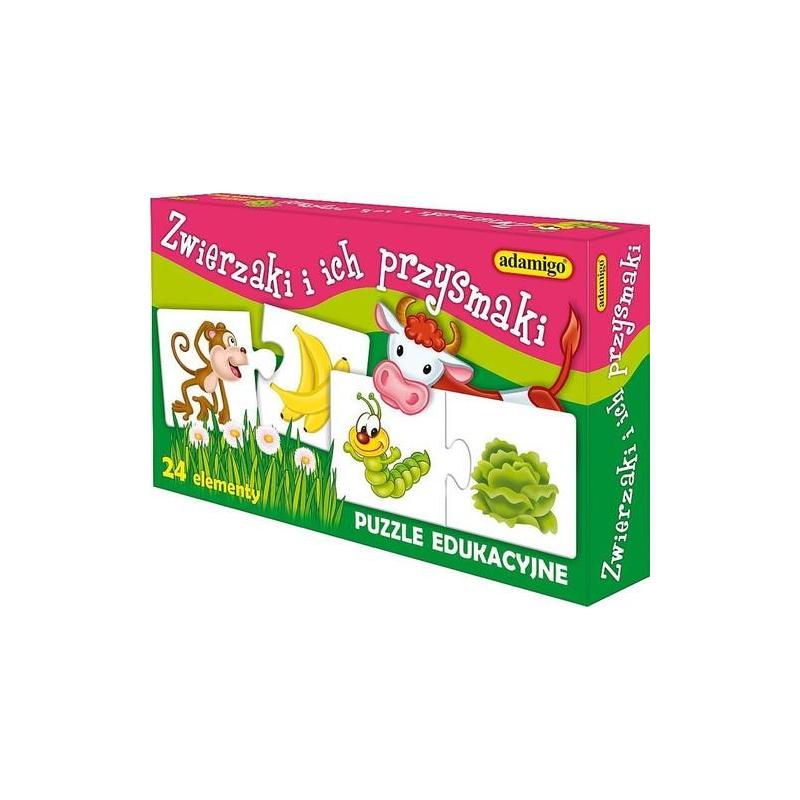 Zwierzaki i ich przysmaki Adamigo to edukacyjna układanka stworzona z myślą o najmłodszych dzieciach. Puzzle edukacyjne 3+ pomagają w nauce rozpoznawania zwierząt oraz ich ulubionego jedzenia, jednocześnie wspierając rozwój pamięci i koncentracji.