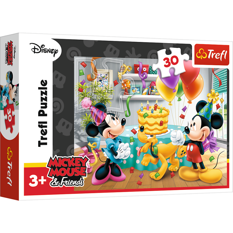 Puzzle 30 el. Tort urodzinowy Trefl MYSZKA MINNIE to bezpieczna, edukacyjna i kolorowa zabawa dla dzieci od 3 roku życia. Krótki czas układania, przyjazny motyw i rozwijające funkcje sprawiają, że są idealnym wyborem dla małych miłośników puzzli i Myszki Minnie.