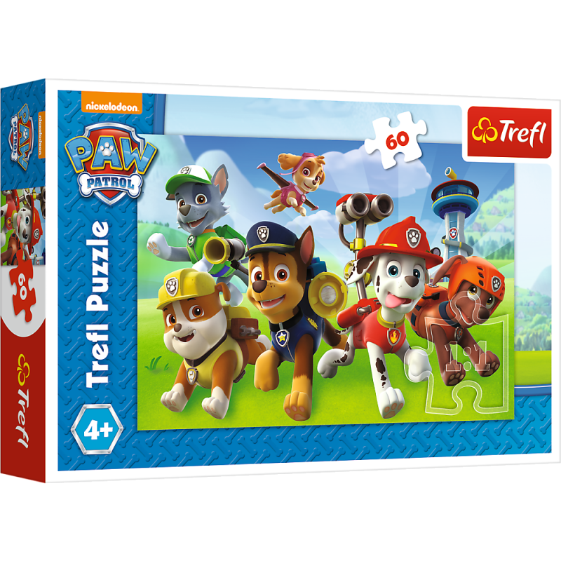 Puzzle 60 elementów z ulubionym przez dzieci motywem z serialu Psi Patrol. Po ułożeniu powstanie piękny kolorowy obrazek przedstawiający bohaterów serialu: pieski z Psiego Patrolu.