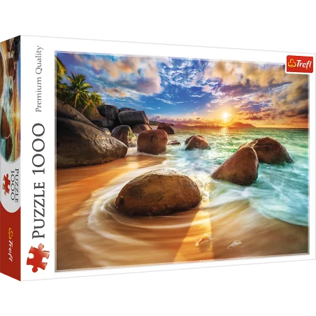 Trefl Puzzle 1000 elementów to wyjątkowa układanka, która przeniesie Cię w malownicze zakątki Indii. Po złożeniu powstaje piękny obrazek przedstawiający plażę Samudra – miejsce, które zachwyca spokojem i rajskim krajobrazem.