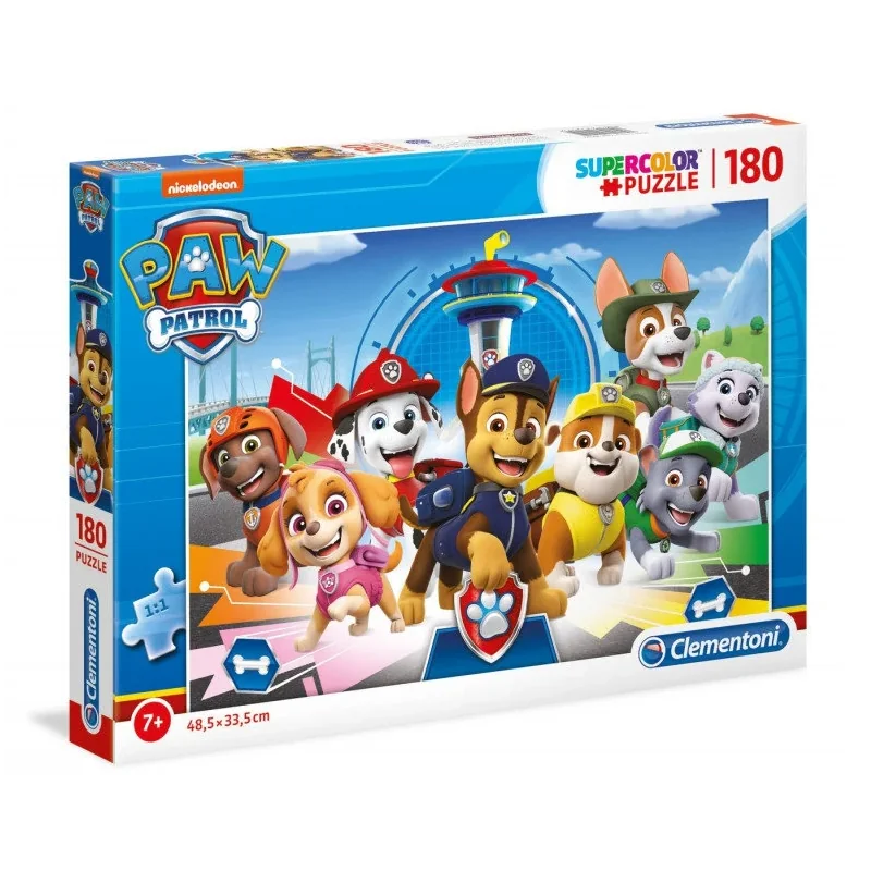 Puzzle Clementoni Psi Patrol 180 elementów to doskonała propozycja dla dzieci od 7 roku życia. Układanka przedstawia ulubionych bohaterów z bajki Psi Patrol, oferując wciągającą i rozwijającą rozrywkę. Dzięki wysokiej jakości wykonania puzzle łączą się perfekcyjnie, a żywe kolory sprawiają, że obraz po ułożeniu prezentuje się wyjątkowo atrakcyjnie.