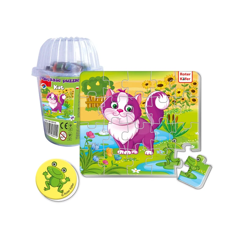 Puzzle z obrazkiem kotka. Podczas układania puzzli maluch nauczy się łączyć detale pod względem koloru i kształtu. Gra wymaga skupienia, uczy cierpliwości i koncentracji, rozwija logiczne myślenie, trenuje motorykę rąk. Puzzle można wygodnie przechowywać w plastykowym kubku. Na etykiecie znajduje się wzór do układania, aby dziecko mogło uniknąć błędów. Oprócz kompletu elementów puzzli w opakowaniu znajduje się również okrągły magnes ozdobny.