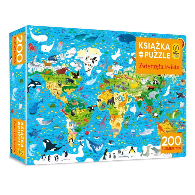 Zestaw to świetny sposób na wspólne spędzanie czasu z dzieckiem, zachęcający do rozmów o przyrodzie i ekologii. Puzzle o tematyce mapy świata z fauną uczą dzieci rozpoznawania gatunków, a książka pozwala zgłębić wiedzę o zwierzętach i ich środowisku. To produkt, który bawi i uczy jednocześnie, czyniąc naukę przyjemną i angażującą.