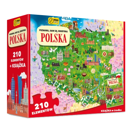 Zestaw Puzzle Polska od Wilga Play to doskonałe połączenie nauki i zabawy. Dzięki układance składającej się z 210 elementów oraz bogato ilustrowanej książeczce dzieci mogą odkrywać piękno Polski – jej miasta, zabytki, krajobrazy i fascynujące fakty historyczne. To wciągająca propozycja dla młodych odkrywców, którzy chcą poznać swój kraj w atrakcyjny i angażujący sposób.