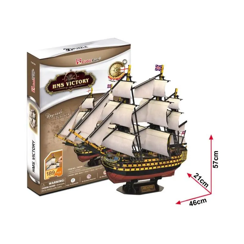 Odkryj legendarny okręt z XVIII wieku w zupełnie nowej formie dzięki puzzlom 3D HMS Victory marki Cubic Fun. To model żaglowca do samodzielnego składania, który pozwala odtworzyć z niezwykłą precyzją historyczny okręt admirała Nelsona. Idealny dla pasjonatów historii, miłośników modelarstwa oraz