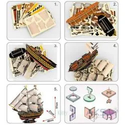 Odkryj legendarny okręt z XVIII wieku w zupełnie nowej formie dzięki puzzlom 3D HMS Victory marki Cubic Fun. To model żaglowca do samodzielnego składania, który pozwala odtworzyć z niezwykłą precyzją historyczny okręt admirała Nelsona. Idealny dla pasjonatów historii, miłośników modelarstwa oraz młodzieży i dorosłych szukających angażującego i kreatywnego wyzwania. Bez użycia kleju i narzędzi, a z efektem, który robi wrażenie.