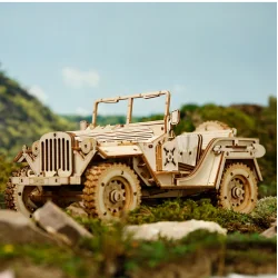 ROBOTIME – Jeep Wojskowy to wysokiej jakości drewniane puzzle 3D do samodzielnego złożenia, które po zbudowaniu tworzą realistyczny model pojazdu wojskowego. Zestaw został zaprojektowany z myślą o dzieciach od 8. roku życia oraz dorosłych pasjonatach modelarstwa, którzy cenią sobie precyzję, estetykę i satysfakcję z własnoręcznie wykonanego projektu.