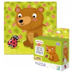Puzzle 16 el. Misiek + kolorowanka od marki Dodo to uroczy zestaw edukacyjny dla najmłodszych, łączący układankę z aktywnością plastyczną. Dziecko nie tylko trenuje koncentrację i koordynację, ale również rozwija wyobraźnię poprzez kolorowanie obrazka z tym samym motywem. To idealna propozycja dla przedszkolaków już od 3. roku życia.