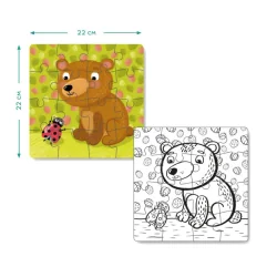 Puzzle 16 el. Misiek + kolorowanka od marki Dodo to uroczy zestaw edukacyjny dla najmłodszych, łączący układankę z aktywnością plastyczną. Dziecko nie tylko trenuje koncentrację i koordynację, ale również rozwija wyobraźnię poprzez kolorowanie obrazka z tym samym motywem. To idealna