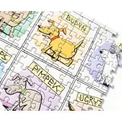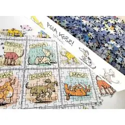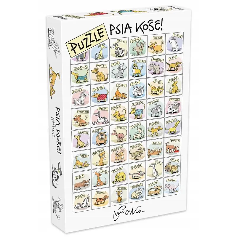 Puzzle „Psia Kość!” łączą wciągającą zabawę z wyjątkowym poczuciem humoru Andrzeja Mleczki. To świetny sposób na wyciszenie, oderwanie się od ekranu i rozwój spostrzegawczości. Idealne dla fanów satyry, miłośników psów i wszystkich, którzy lubią układać z uśmiechem.