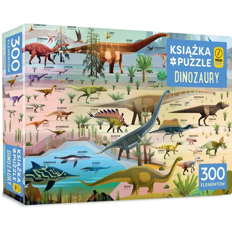 Zestaw Wilga Play – Dinozaury to fascynujące połączenie książki edukacyjnej z kolorowymi puzzlami 300-elementowymi, które przenoszą dziecko w świat prehistorycznych gadów. To idealny wybór dla małych odkrywców i miłośników dinozaurów, którzy chcą rozwijać wiedzę oraz umiejętności