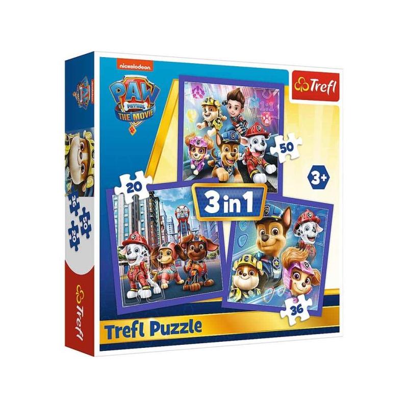 Puzzle 3w1 Psi Patrol od Trefl to kolorowy i bezpieczny zestaw dla najmłodszych fanów popularnej bajki. Składający się z trzech niezależnych obrazków o różnym stopniu trudności, zestaw rozwija spostrzegawczość, cierpliwość i koordynację wzrokowo-ruchową, oferując dziecku