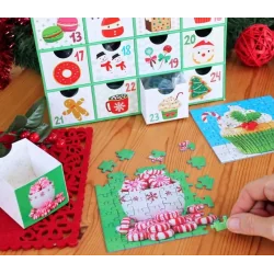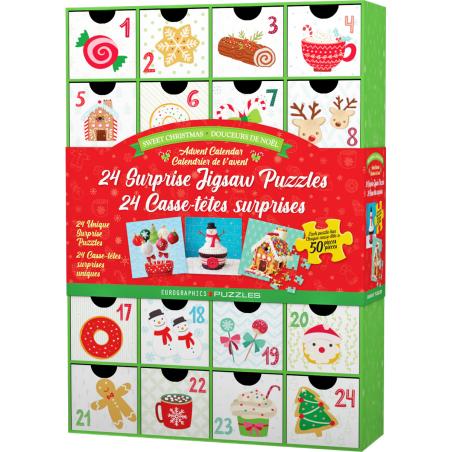 Kalendarz adwentowy Sweet Christmas marki EuroGraphics to wyjątkowa propozycja dla miłośników puzzli i świątecznej atmosfery. Zamiast tradycyjnych czekoladek, każdego dnia odkrywasz nowy zestaw puzzli, tworząc świąteczne obrazki pełne magii, kolorów i ciepła. To wspaniały sposób, by odliczać dni do Bożego Narodzenia w kreatywny i radosny sposób.
