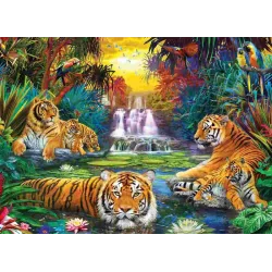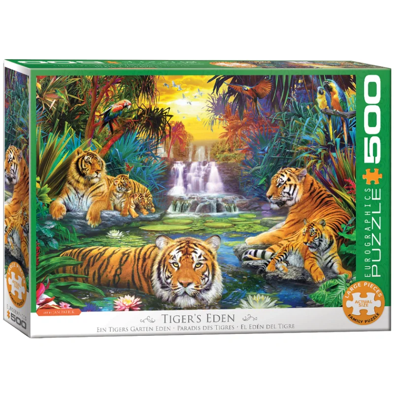 Puzzle Tygrysi Raj XL 500 elementów Eurographics 10+ to wysokiej jakości układanka przedstawiająca malowniczą scenę z tygrysami w naturalnym środowisku. Duża liczba elementów oraz format XL zapewniają rozwijające wyzwanie, które sprzyja koncentracji, cierpliwości i umiejętności logicznych u dzieci powyżej 10 roku życia.