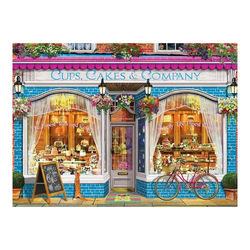 EUROGRAPHICS PUZZLE CUKIERNIA CUPS, CAKES & COMPANY 1000 ELEMENTÓW to doskonała propozycja dla miłośników puzzli i słodkich motywów. Puzzle łączą wysoką jakość wykonania, atrakcyjny wizualnie temat oraz relaksującą i rozwijającą rozrywkę, stanowiąc świetny prezent dla każdego miłośnika układanek.