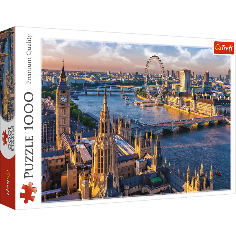 TREFL PUZZLE 1000 ELEMENTÓW LONDYN to wysokiej jakości układanka przedstawiająca malowniczy widok na centrum Londynu. Precyzyjne wykonanie, nasycone kolory oraz trwałość elementów sprawiają, że układanie staje się czystą przyjemnością – zarówno dla początkujących, jak i doświadczonych miłośników puzzli.