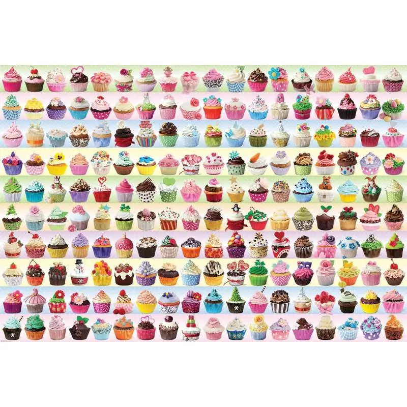To wysokiej jakości puzzle dla wymagających, które zapewniają wiele godzin satysfakcjonującej rozrywki. Intensywna kolorystyka i szczegółowa grafika babeczek sprawiają, że układanie jest angażujące i estetycznie przyjemne. Duża liczba elementów czyni zestaw doskonałym wyborem dla doświadczonych miłośników puzzli.