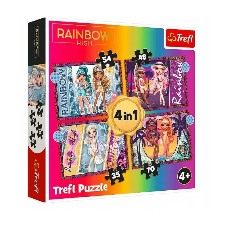 Puzzle 4 w 1 Rainbow High 34614 to zestaw czterech kolorowych układanek inspirowanych popularną serią Rainbow High. Produkt został zaprojektowany z myślą o dzieciach, które lubią kreatywną zabawę oraz rozwijanie zdolności manualnych poprzez dopasowywanie elementów o różnym stopniu